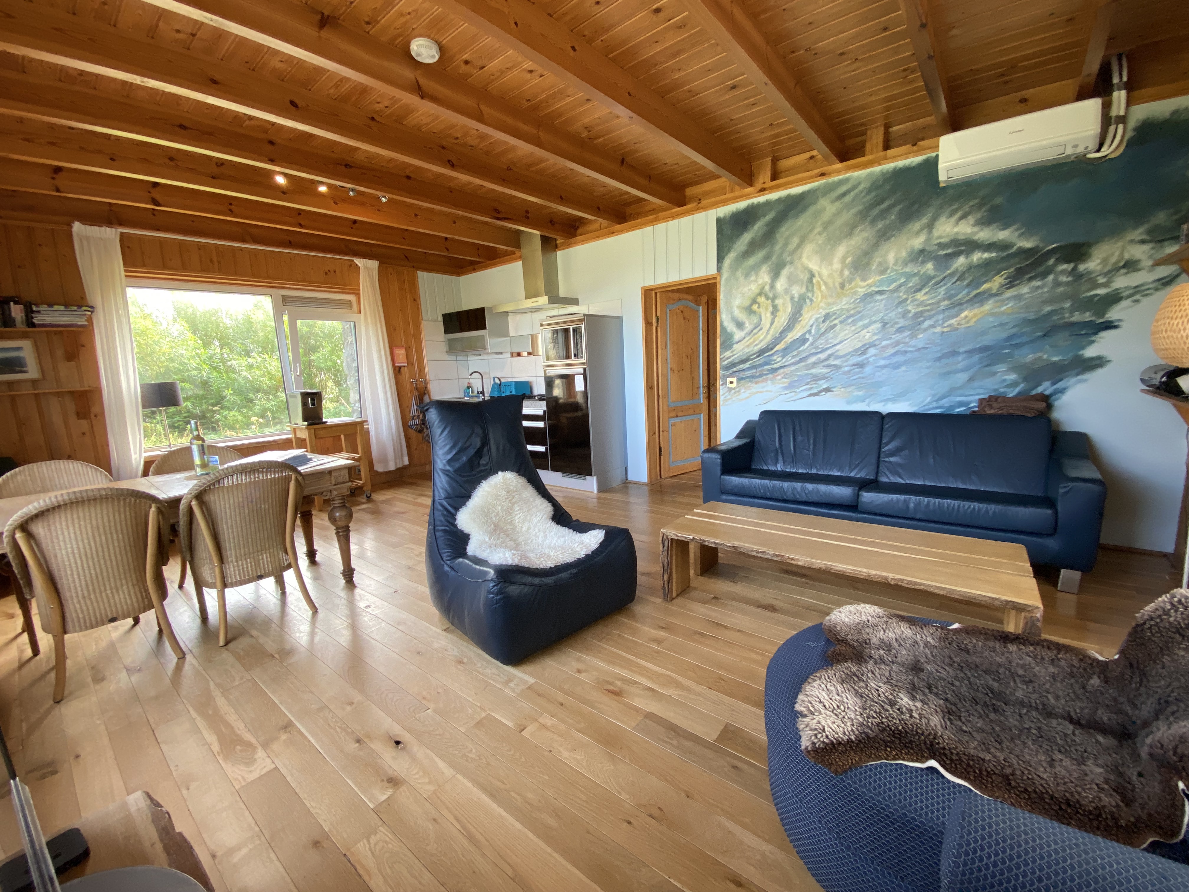 FULMAR COTTAGE IS A GREAT PLACE TO GET AWAY FROM IT ALL IN PEACEFUL AND BEAUTIFUL SURROUNDING, AT A 5 MIN WALK FROM THE BEACH. Fulmar Cottage is a 2 bedroom self-catering accommodation in Northton, West Harris in the Outer Hebrides. The kitchen area within the living space is equipped with a dishwasher, fridge and microwave/combi-oven. You will find the living area equipped with comfortable furnishings, a TV, WIFI, DVD player and a dining area. The living space enjoys breathtaking panoramic views towards the hills on north Harris and over Scarista beach, where you can watch otters play. The main bathroom includes a sauna, perfect for warming up after a walk, wild swim (or surfing session!), a bath and separate shower. The main bedroom includes a king-sized bed and the second twin bedroom is en-suite with its own shower, basin and WC. The hallway contains a washing machine, separate tumble dryer and freezer. Special features are the murals expressing the Hebridean wildlife showing seals, dolphins, birds, and a spectacular wave in the living space all painted by the talented previous owner. Fulmar Cottage is set back from the Northton settlement accessed by its own road and sits on its own ¼ acre plot with private parking. You will find plenty to do, whether you want a relaxing or a more active holiday. The nearest beach, Northton beach, with its stunning views and magnificent sunsets, is within a 10-minute walk (there are 4 further beaches within walking distance). Croft 36 and Temple Cafe are within a 5-minute walk for coffee lovers or those wanting a cup of warming lobster bisque after a walk along the beaches. There is a small outside play area for children, outside seating, outside tap for rinsing wetsuits and fishing rods, drying facilities etc. The property sleeps max. of 4 persons. Harris is a paradise for wildlife lovers, anglers, fly fishing or sea fishing, there is always a good catch! Expert or aspiring golfers may also want to check out the scenic Isle of Harris Golf Course just up the road! Rates&Book